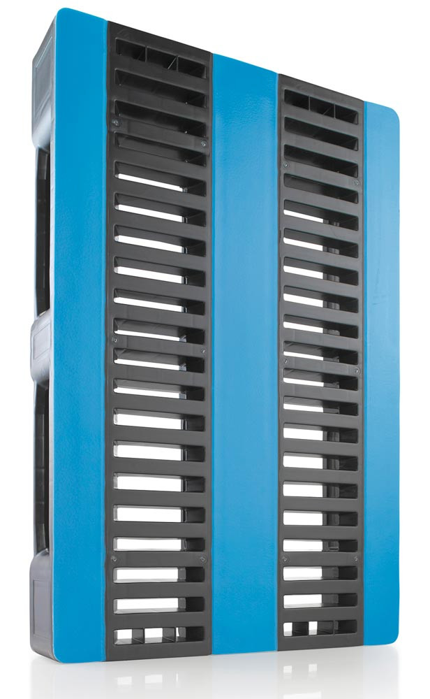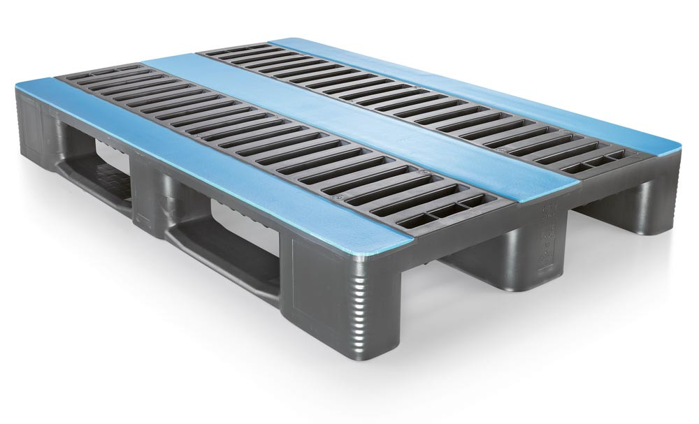3-Kufen-Palette aus HDPE, rutschhemmende Oberfläche, Traglast stat./dynam. 7500/1500 kg, BxTxH 1200x800x160 mm, ohne Rand, Farbe grau/blau E834345