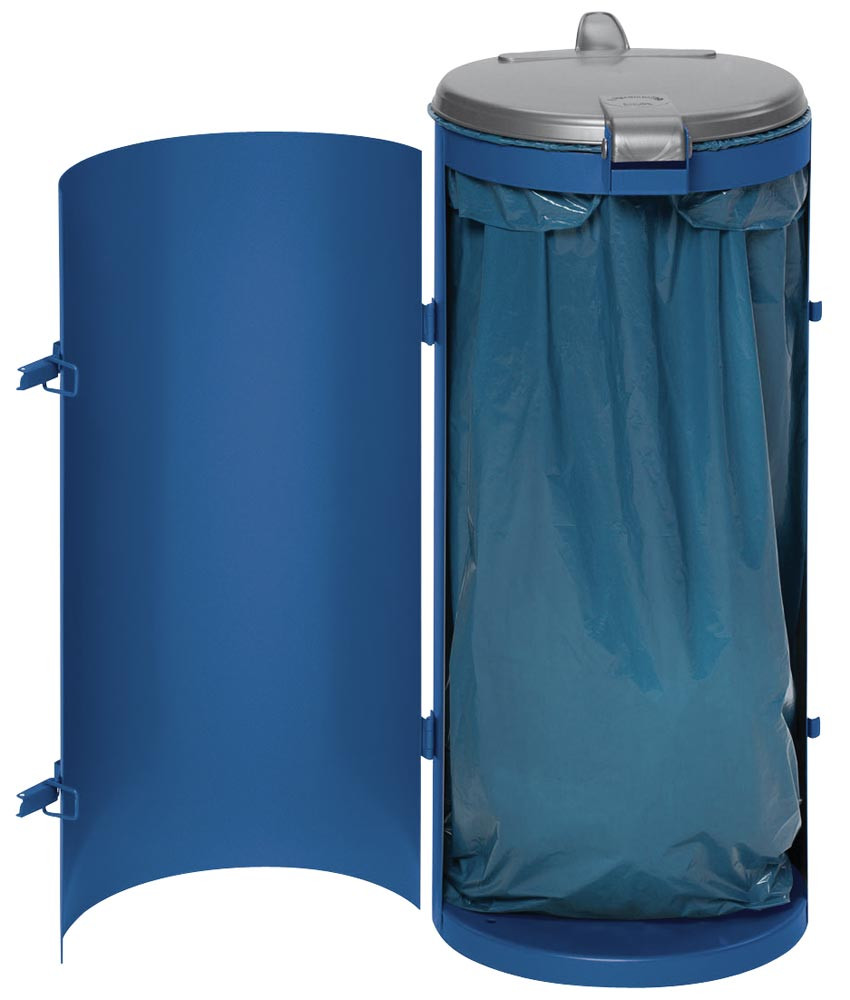 Abfallsammler, Deckel silber, mit Einflügeltür, RAL 5010, HxDurchm. 900x450 mm, Vol. 120 l