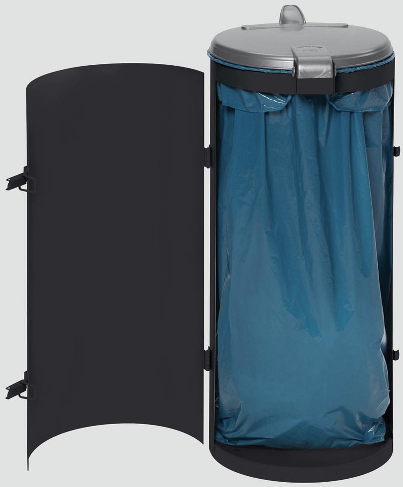 ∙ Für 120 l Kunststoff- oder Papiersäcke ∙ Hergestellt aus verzinktem Stahl ∙ Pulverbeschichtet ∙ Mit Einflügeltür ∙ Boden mit Lochung zur diebstahlsicheren Befestigung ∙ Innen und Außen einsetzbar ∙ Höhe 900 mm ∙ Durchmesser 450 mm ∙ Ø Einwurföffnung 350 mm