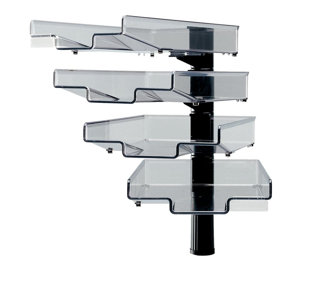 Ablagekorb-Tischständer, BxTxH 270x370x500 mm, 4 Kunststoffschalen transparent, Ständer schwarz E866063