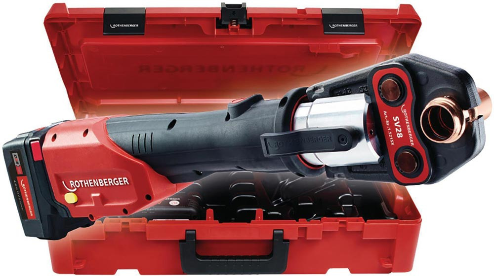 Akku-Pressmaschine ROMAX 4000 Basic Set CAS Akku, Ladegerät, SV 15, 22, 28 mm 4 Ah 32 - 34 kN 12 - 110 mm