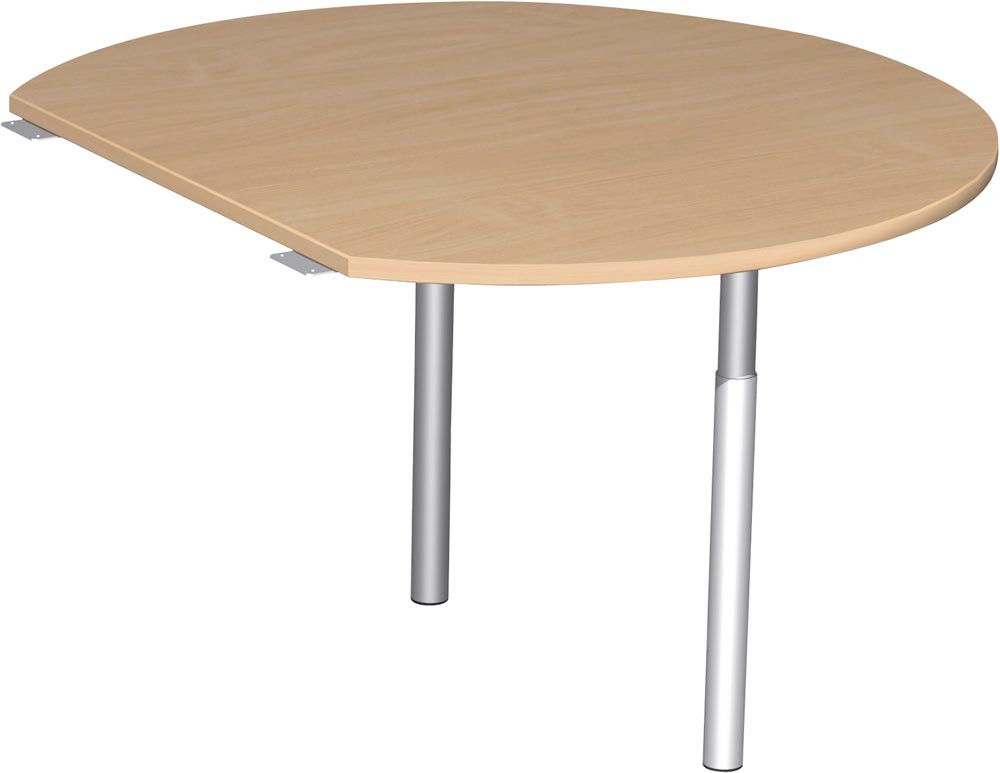 Anbautisch, rund, BxTxH 1200x1047x680-820 mm, höhenverstellbar, Platte buche, Stützfüße silber, inkl. Montagesatz