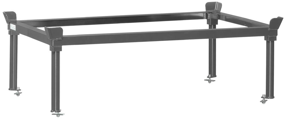 ∙ Winkelstahl-Schweißkonstruktion mit Fangecken ∙ Stabile Stützrohre mit Fußplatten, einsteckbar in Eckhülsen am Aufsatzrahmen ∙ Schlag- und kratzfest