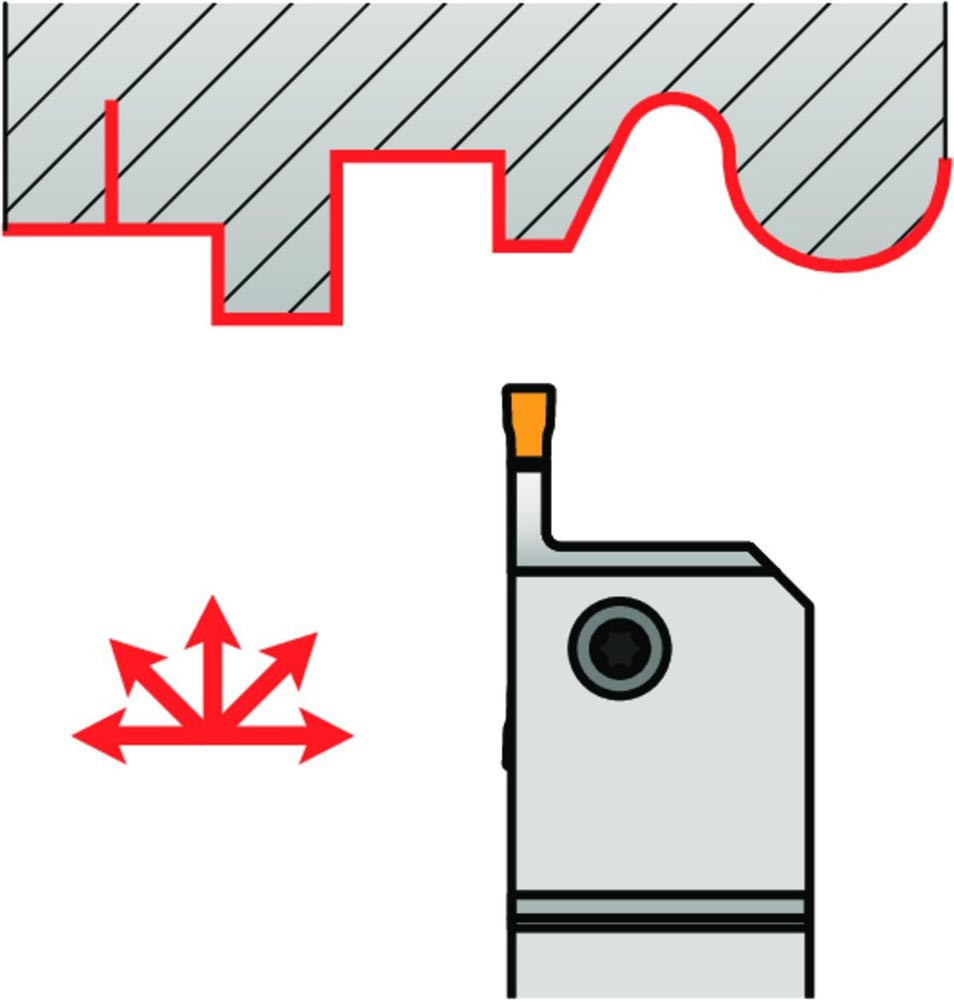 GL6-S2020KFL-12 ist ein linker Außendrehhalter für GL Wendschneidplatten. Am besten geeignet für das Längsdrehen und zum Profilieren aber auch zum Ein- und Abstechen.Körper für längere Standzeit oberflächenbehandelt.