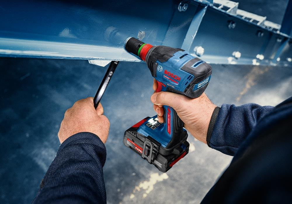 Kompakter Akku-Drehschlagschrauber mit bürstenlosem Motor für mehr Leistung ∙ Vielseitige Einsatzmöglichkeiten durch 2-in-1 Aufnahme: 1⁄4'' Hex und 1⁄2‘’ Vierkant ∙ 5 wählbare Geschwindigkeitsstufen und 4 Schraubenmodi am Werkzeug auswählbar ∙ HMI-Sperre um versehentliche Änderungen an der Benutzeroberfläche zu verhindern und Einstellungen zu sperren