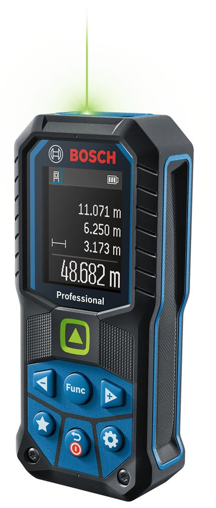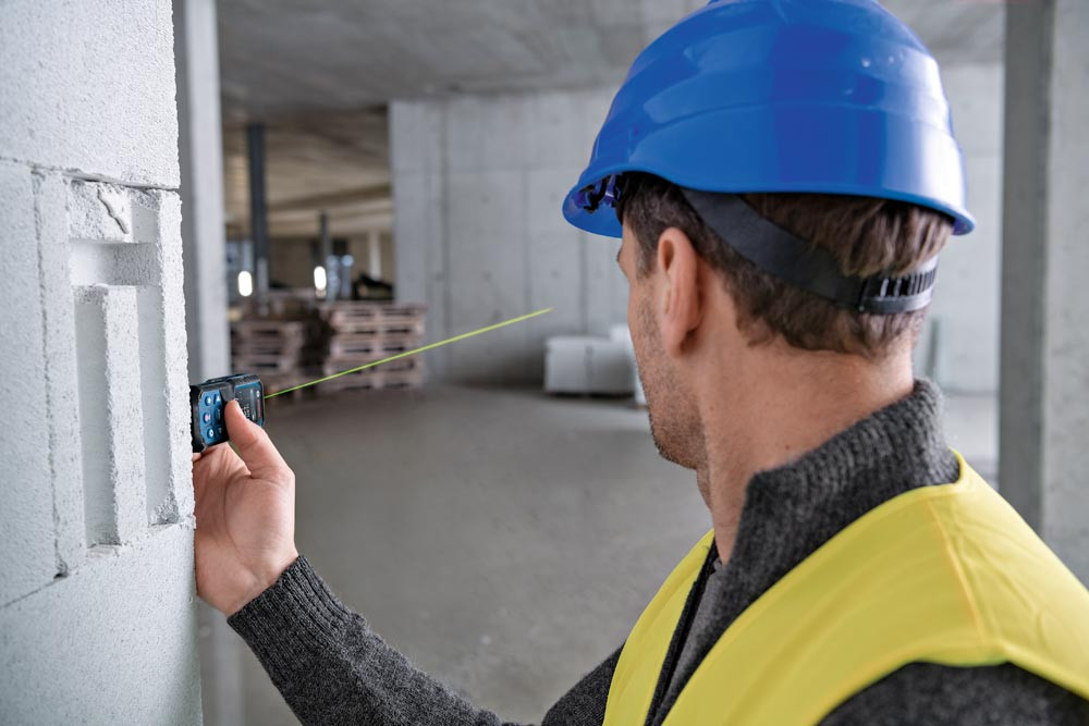Ausführung: Laser-Entfernungsmesser mit grünem Laserpunkt für leichteres Zielen beim Messen über große Distanzen im Innenbereich ∙ Mit IP65-Design für vollständigen Schutz vor Staubteilchen und Strahlwasser ∙ Stoßabsorbierendes Gehäuse für Stürze aus 1,5 m Höhe auf harten Beton ∙ Taste für individuelle Anpassungen, mit der bevorzugte Messfunktionen und Einstellungen oder ein Vibrations-Feedback zur Bestätigung von Messungen eingestellt werden können ∙ User Interface unterstützt 30 Sprachen ∙ Mit Farbdisplay ∙ Ideal zum Platzieren und Befestigen von Elementen an Holz, anderen Materialien und Trockenbaukonstruktionen; für Elektriker, Klimatechniker und Klempner