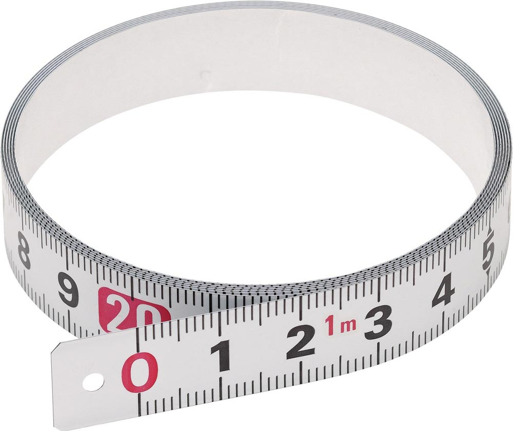 selbstklebend · Stahlband · mit Selbstklebefolie auf der Rückseite zur Befestigung auf Oberflächen · Länge kann nach Bedarf gekürzt werden · Anbringung auf Wandtafeln, Zeichentischen, Werkbänken oder Werkzeugen möglich (horizontal oder vertikal) · Skala von links nach rechts · Art.-Nr. 6513534: Skala von rechts nach links