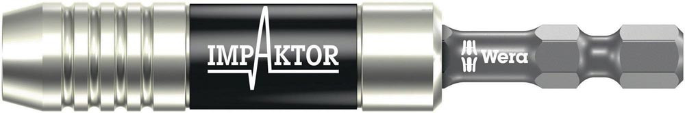 Wera Impaktor Halter zur Abfederung extremer Impulsspitzen. Besonderer Torsionseffekt durch Doppeltorsionsfeder. Der Sprengring garantiert optimalen Sitz des Werkzeugs im Halter. Der Magnet sorgt für zusätzlichen Festsitz von Bit und Schraube. Der Impaktor Edelstahl-Halter mit Sprengring und Magnet wird den extremen dynamischen Anforderungen insofern gerecht · als dass er bewusst auf mechanisch anfälligere Kleinbauteile verzichtet. Einsatz vorwiegend in der industriellen Schraubmontage · z.B. mittels Schraubroboter. Abtrieb: Geeignet für Bits mit 1/4″-Außensechskantantrieb nach DIN ISO 1173-C 6,3. Antrieb: 1/4″-Sechskant · passend für Schraubermaschinen mit Aufnahme nach DIN ISO 1173-F 6,3. Vorteile: Impaktor Halter mit Sprengring und Magnet für Bits mit 1/4″ Außensechskantantrieb. Zur Abfederung extremer Impulsspitzen durch Doppeltorsionsfeder. Edelstahlhalter mit Magnet für den sicheren Sitz von Bit und Schraube. Besonders geeignet für den Einsatz mit handelsüblichen Impakt-/Schlagschraubern. Mit 1/4″ Sechskantantrieb. Wera Impaktor Halter zur Abfederung extremer Impulsspitzen. Besonderer Torsionseffekt durch Doppeltorsionsfeder. Der Sprengring garantiert optimalen Sitz des Werkzeugs im Halter. Der Magnet sorgt für zusätzlichen Festsitz von Bit und Schraube. Der Impaktor Edelstahl-Halter mit Sprengring und Magnet wird den extremen dynamischen Anforderungen insofern gerecht · als dass er bewusst auf mechanisch anfälligere Kleinbauteile verzichtet. Einsatz vorwiegend in der industriellen Schraubmontage · z.B. mittels Schraubroboter. Abtrieb: Geeignet für Bits mit 1/4″-Außensechskantantrieb nach DIN ISO 1173-C 6,3. Antrieb: 1/4″-Sechskant · passend für Schraubermaschinen mit Aufnahme nach DIN ISO 1173-F 6,3.
