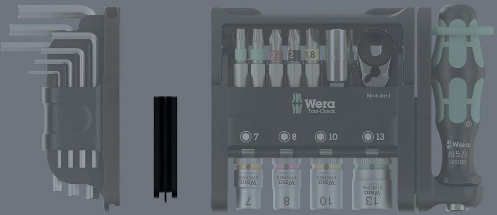 ermöglicht die individuelle Zusammenstellung unterschiedlichster Tool-Check Modular Elemente · für Hand- und Maschinen-Verschraubung, für feinmechanische Verschraubungen, für Innensechskantschrauben