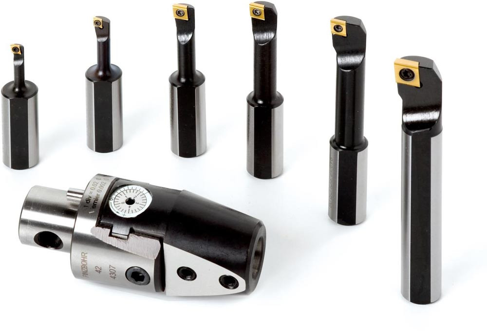 Schraubgeklemmte Bohrstange zum halten von 80° rhombische Form positive Wendeschneidplatte mit einem Innenkreisdurchmesser 6.35mm · 2.38mm Dick (ISO Bezeichnung CC.. 0602.. ) · rechte Ausführung 95° Seiten-und Stirnschnitt mit versetztem Schaft · Stahl ohne Kühlmittelbohrung · 8mm Durchmesser 35mm Überstandslänge für Kegel-und Längsbohren mit und ohne Schulter