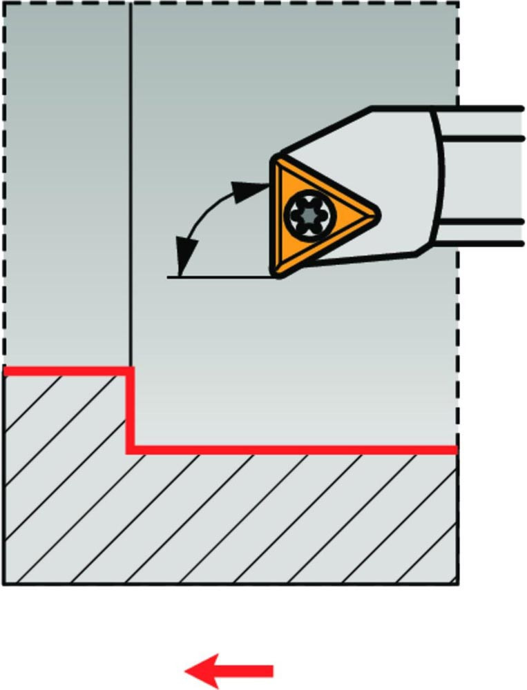 Dreh-Bohrstange mit Schraubklemmung zum spannen von Triangular positive Wendeschneidplatten mit einem Innenkreisdurchmesser von 9.525mm · 3.97mm Dick (ISO Bezeichnung TC.. 16T3.. ) · rechte Ausführung zum 90° Längsdrehen mit abgesetzem Schaft · Stahl ohne Kühlkanalbohrung · 32mm Durchmesser x 350mm Länge für Innenkegeldrehen und Längsdrehen mit und ohne Schulter