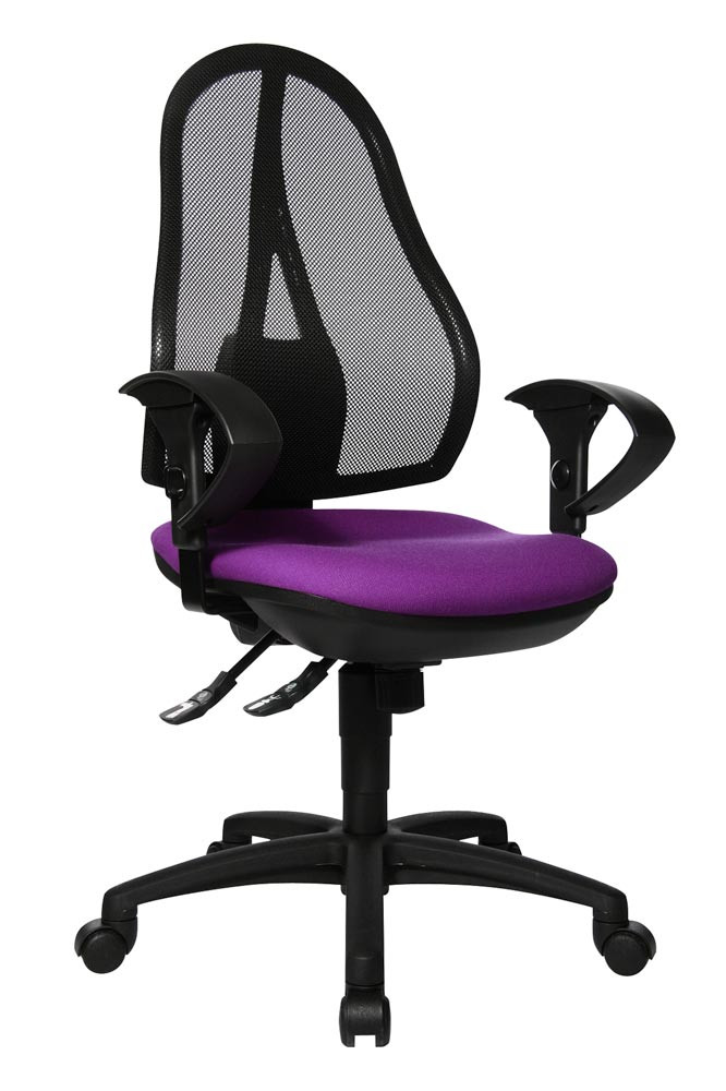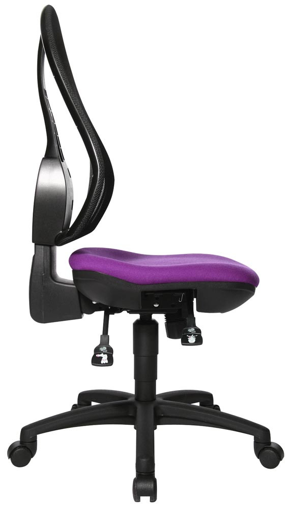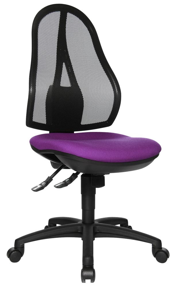 Bürodrehstuhl, Sitz-BxTxH 480x480x430-510 mm, Lehnenh. 580 mm, Netzrücken, Punkt-Synchronm., Bandscheibensitz, lila