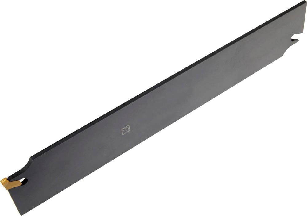Ein-und Abstechschwert federgeklemmt zum spannen einer einseitigen Wendeschneidplatte mit 4mm Schnittbreite (Bezeichnung LFMX 4.1-. ) · Werkzeugbestückung mit 45-DU.. für eine maximale Einstechtiefe von 80mm · Werkzeugschwert-Höhe 45mm und Länge 250mm zum tiefes radiales Einstechen · Abstechen und Rohr-Abstechen