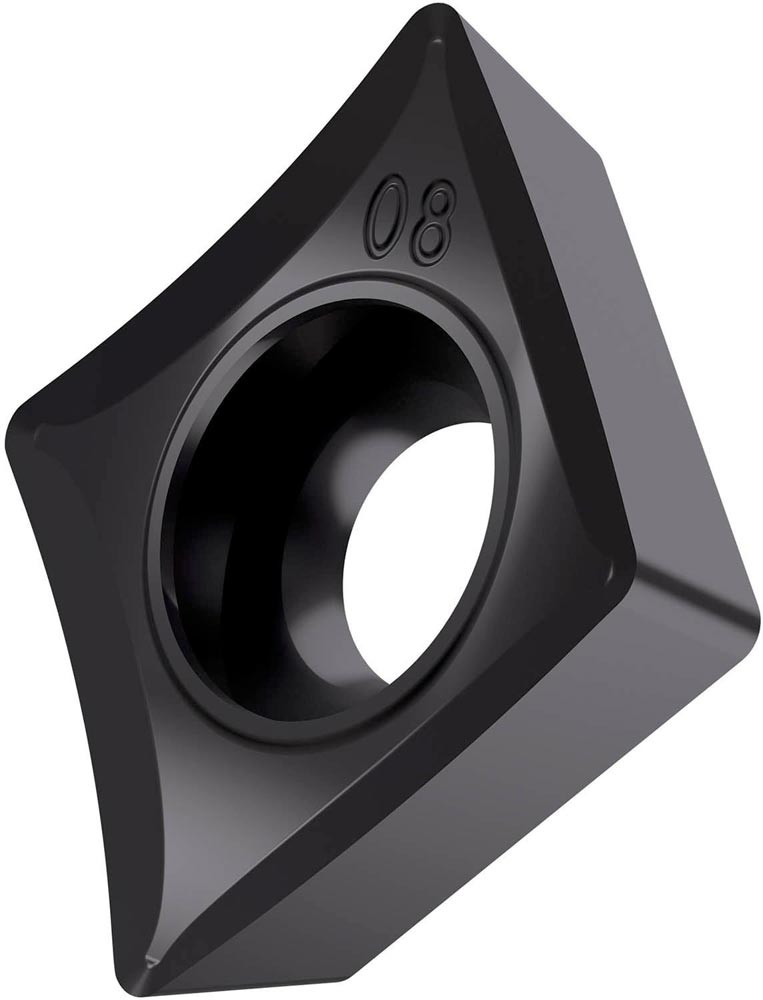 Einseitige positive Drehwendeschneidplatte · 80° Rhombisch mit 7° Freiwinkel · Innenkreisdurchmesser von 6.35mm · 2.38mm Dick · 0.2mm Radius · Indexgenauigkeit nach ISO-Toleranzklasse-G · Spanbrecher SF3 mit verrundeter Schneidkante · im Substrat T8415.