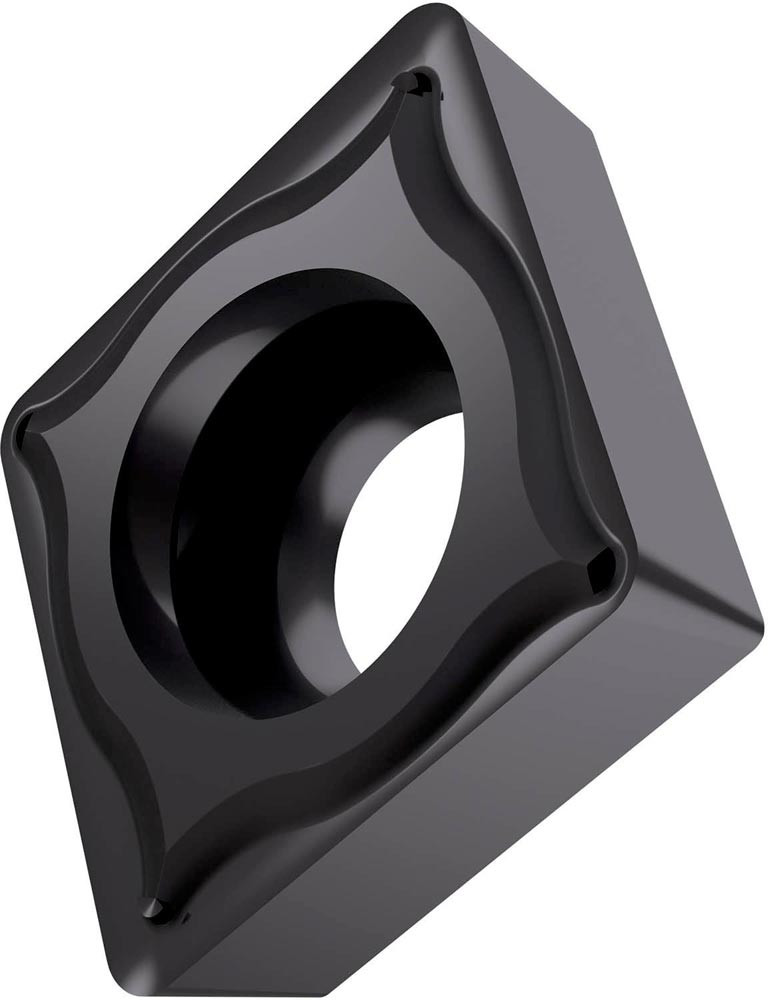 Einseitige positive Drehwendeschneidplatte · 80° Rhombisch mit 7° Freiwinkel · Innenkreisdurchmesser von 9.525mm · 3.97mm Dick · 0.8mm Radius · Indexgenauigkeit nach ISO-Toleranzklasse-G · Spanbrecher NF1 mit verrundeter Schneidkante · im Substrat T6310 · PVD beschichtet WC-Co Feinstkornsubstrat in den ISO-Bereichen P01 -P15/M01 -M15 und S01 -S15 · zum schlichten bis medium bearbeiten von Stählen · nichtrostenden Stählen und Superlegierungen