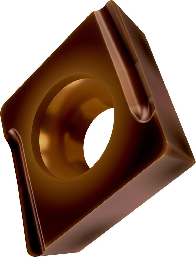 Einseitige positive Drehwendeschneidplatte · 80° Rhombisch mit 7° Freiwinkel · Innenkreisdurchmesser von 12.7mm · 4.76mm Dick · 0.8mm Radius · Indexgenauigkeit nach ISO-Toleranzklasse-G · Spanbrecher SI mit verrundeter Schneidkante · im Substrat T8430 · PVD beschichtet WC-Co Feinkornsubstrat in den ISO-Bereichen P20 -P40 und M20 -M35 · zum schlichten bis medium bearbeiten von Stählen und nichtrostenden Stählen mit einem linksschneidendem Werkzeug