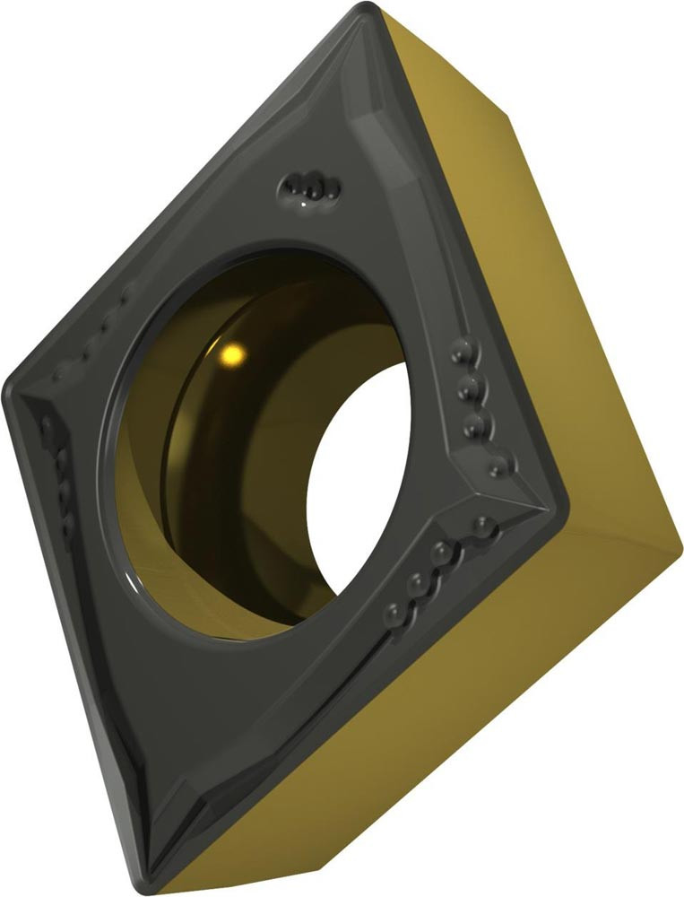 Einseitige positive Drehwendeschneidplatte · 80° Rhombisch mit 7° Freiwinkel · Innenkreisdurchmesser von 9.525mm · 3.97mm Dick · 0.4mm Radius · Indexgenauigkeit nach ISO-Toleranzklasse-M · Spanbrecher FM mit verrundeter Schneidkante · im Substrat T9415 · MT-CVD beschichtet WC-Co Substrat im ISO-Bereich P05 -P30 · zum schlichten bis medium bearbeiten von Stählen