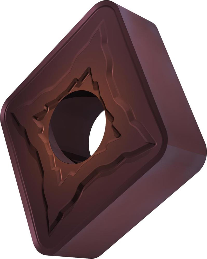 Doppelseitige negative Drehwendeschneidplatte · 80° Rhombisch mit Innenkreisdurchmesser von 12.7mm · 4.76mm Dick · 1.6mm Radius · Indexgenauigkeit nach ISO-Toleranzklasse-M · Spanbrecher NMR mit verrundeter Schneidkante · im Substrat T8430 · PVD beschichtet WC-Co Feinkornsubstrat in den ISO-Bereichen P20 -P40 und M20 -M35 · zum schlichten bis schruppen bearbeiten von Stählen und nichtrostenden Stählen