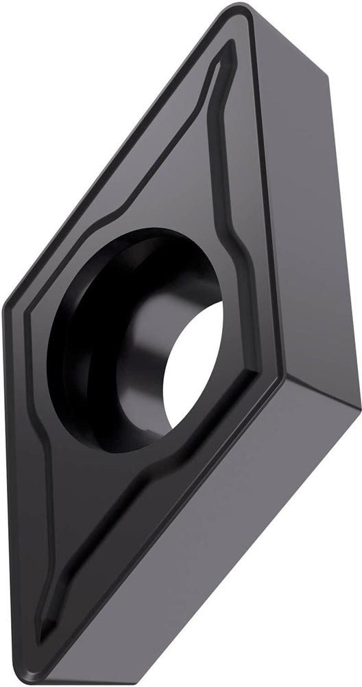 Einseitige positive Drehwendeschneidplatte · 55° Rhombisch mit 7° Freiwinkel · Innenkreisdurchmesser von 9.525mm · 3.97mm Dick · 0.4mm Radius · Indexgenauigkeit nach ISO-Toleranzklasse-M · Spanbrecher FM2 mit verrundeter Schneidkante · im Substrat T6310 · PVD beschichtet WC-Co Feinstkornsubstrat in den ISO-Bereichen P01 -P15 und K05 -K20 · zum schlichten bis medium bearbeiten von Stählen und Gusseisen