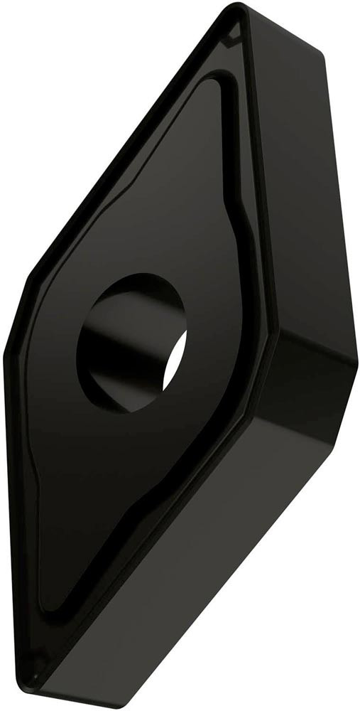 Doppelseitige negative Drehwendeschneidplatte · 55° Rhombisch mit Innenkreisdurchmesser von 9.525mm · 4.76mm Dick · 0.8mm Radius · Indexgenauigkeit nach ISO-Toleranzklasse-M · Spanbrecher NM mit verrundeter Schneidkante · im Substrat T7335 · MT-CVD beschichtet functionally graded WC-Co carbide in den ISO-Bereichen M20 -M40 und S15 -S25 · zum schlichten bis schruppen bearbeiten von nichtrostenden Stählen und Superlegierungen