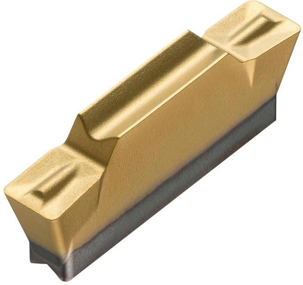 Doppelseitige Ein-und Abstech Wendeschneidplatte · 16.4mm lang mit einer 4mm Schnittbreite und einem 0.4mm Eckenradius · eine Genauigkeit nach Toleranzklasse M und einem Spanbrecher M · Substrat T8330 PVD beschichtetes Feinstkorn WC-Co Hartmetall im ISO-Substrats-Bereich P25-P40 und K20-K40 zur Bearbeitung von Stahl und Guss in Kombination mit DORMER PRAMET GF..(RL) 04 · GG..(RL) 04 und XLCCN 0416 Ein-und Abstechwerkzeugen