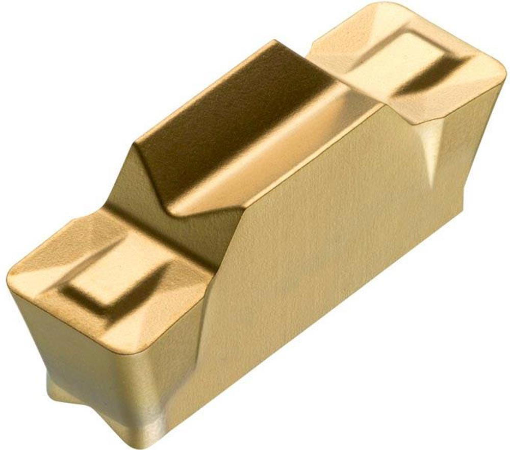 Doppelseitige Ein-und Abstech Wendeschneidplatte · 16.4mm lang mit einer 5mm Schnittbreite und einem 0.8mm Eckenradius · eine Genauigkeit nach Toleranzklasse M und einem Spanbrecher M · Substrat T8330 PVD beschichtetes Feinstkorn WC-Co Hartmetall im ISO-Substrats-Bereich P25-P40 und K20-K40 zur Bearbeitung von Stahl und Guss in Kombination mit DORMER PRAMET GF..(RL) 05 und XLCCN 0516 Ein-und Abstechwerkzeugen