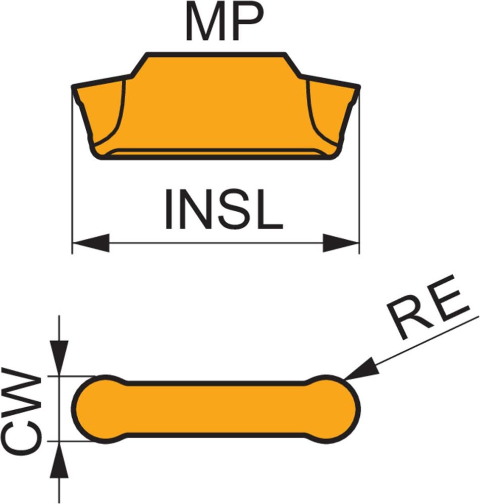 Doppelseitige Ein-und Abstech Wendeschneidplatte · 16.4mm lang mit einer 5mm Schnittbreite und einem 2.5mm Vollradius · eine Genauigkeit nach Toleranzklasse M und einem Spanbrecher MP · Substrat T9325 MT-CVD beschichtetes Funktionskorn WC-Co Hartmetall im ISO-Substrats-Bereich P15-P35 und K15-K35 zur Bearbeitung von Stahl und Guss in Kombination mit DORMER PRAMET GF..(RL) 05 und XLCCN 0516 Ein-und Abstechwerkzeugen