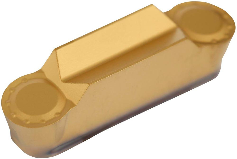 Doppelseitige Ein-und Abstech Wendeschneidplatte · 30mm lang mit einer 8mm Schnittbreite und einem 4mm Vollradius · eine Genauigkeit nach Toleranzklasse M und einem Spanbrecher MP · Substrat T8330 PVD beschichtetes Feinstkorn WC-Co Hartmetall im ISO-Substrats-Bereich P25-P40 und K20-K40 zur Bearbeitung von Stahl und Guss in Kombination mit DORMER PRAMET GF..(RL) 08 und XLCCN 0830 Ein-und Abstechwerkzeugen