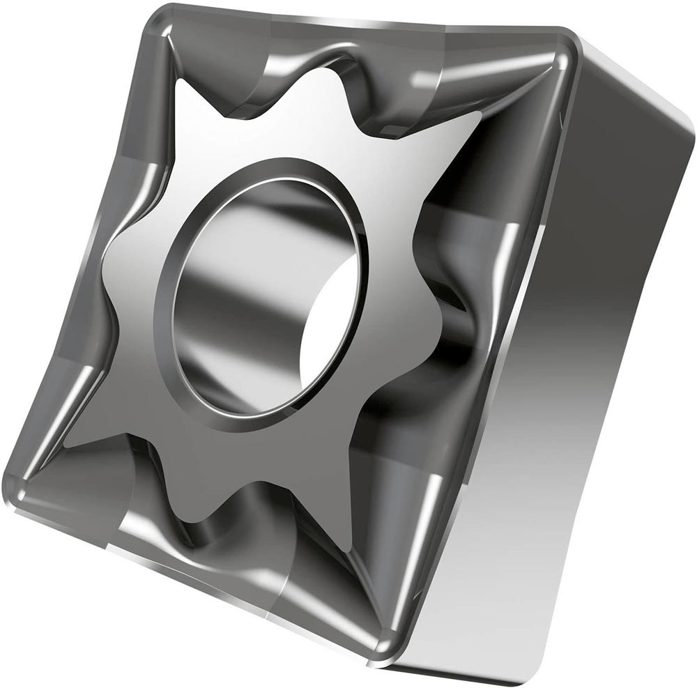 Doppelseitige negative Drehwendeschneidplatte · Viereckig mit Innenkreisdurchmesser von 12.7mm · 4.76mm Dick · 0.8mm Radius · Indexgenauigkeit nach ISO-Toleranzklasse-M · Spanbrecher NF mit verrundeter Schneidkante · im Substrat HF7 · unbeschichtet WC-Co Feinkornsubstrat · zum schlichten bis medium bearbeiten