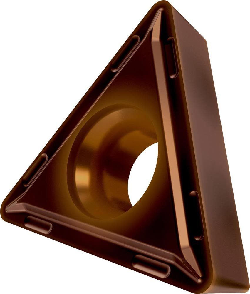 Einseitige positive Drehwendeschneidplatte · Triangular mit 7° Freiwinkel · Innenkreisdurchmesser von 9.525mm · 3.97mm Dick · 0.8mm Radius · Indexgenauigkeit nach ISO-Toleranzklasse-M · Spanbrecher FF2 mit verrundeter Schneidkante · im Substrat T8430 · PVD beschichtet WC-Co Feinkornsubstrat im ISO-Bereich P20 -P40 · zum schlichten bis medium bearbeiten von Stählen