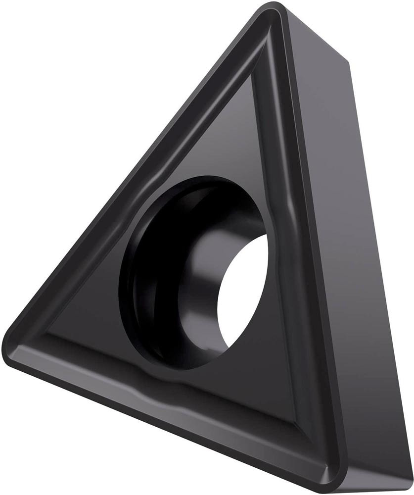 Einseitige positive Drehwendeschneidplatte · Triangular mit 7° Freiwinkel · Innenkreisdurchmesser von 9.525mm · 3.97mm Dick · 0.8mm Radius · Indexgenauigkeit nach ISO-Toleranzklasse-M · Spanbrecher RM3 mit verrundeter Schneidkante · im Substrat T6310 · PVD beschichtet WC-Co Feinstkornsubstrat in den ISO-Bereichen P01 -P15 und K05 -K20 · zum schlichten bis schruppen bearbeiten von Stählen und Gusseisen
