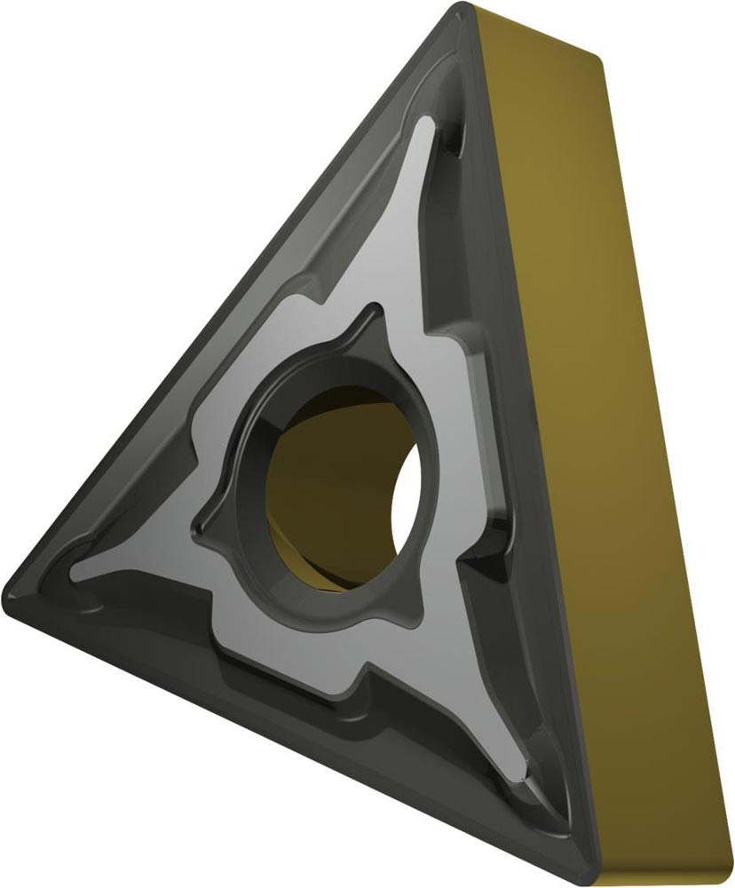 Doppelseitige negative Drehwendeschneidplatte · Triangular mit Innenkreisdurchmesser von 9.525mm · 4.76mm Dick · 0.4mm Radius · Indexgenauigkeit nach ISO-Toleranzklasse-M · Spanbrecher M mit verrundeter Schneidkante · im Substrat T9415 · MT-CVD beschichtet WC-Co Substrat im ISO-Bereich P05 -P30 · zum schlichten bis schruppen bearbeiten von Stählen