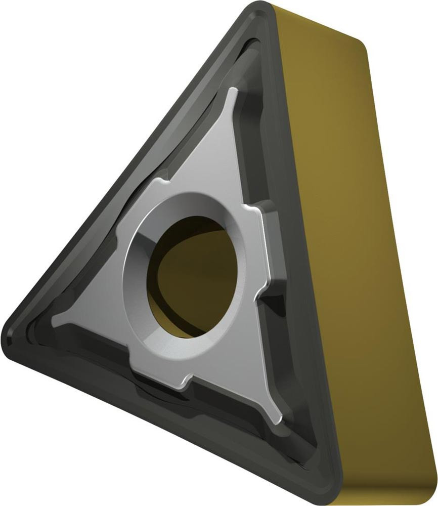 Doppelseitige negative Drehwendeschneidplatte · Triangular mit Innenkreisdurchmesser von 9.525mm · 4.76mm Dick · 0.8mm Radius · Indexgenauigkeit nach ISO-Toleranzklasse-M · Spanbrecher R mit verrundeter Schneidkante · im Substrat T9415 · MT-CVD beschichtet WC-Co Substrat im ISO-Bereich P05 -P30 · zum medium bis schruppen bearbeiten von Stählen