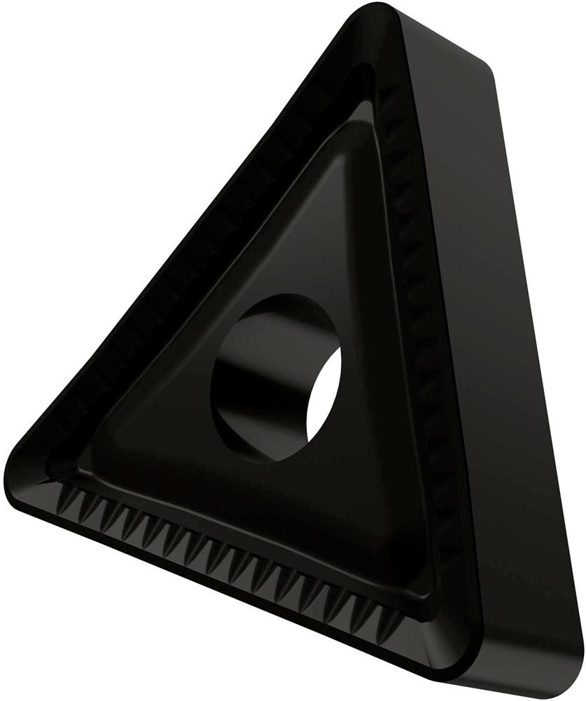 Doppelseitige negative Drehwendeschneidplatte · Triangular mit Innenkreisdurchmesser von 15.875mm · 6.35mm Dick · 1.6mm Radius · Indexgenauigkeit nach ISO-Toleranzklasse-M · Spanbrecher HR mit verrundeter Schneidkante · im Substrat T9335 · MT-CVD beschichtet functionally graded WC-Co carbide im ISO-Bereich P20 -P45 · zum schruppen bis schweres schruppen bearbeiten von Stählen