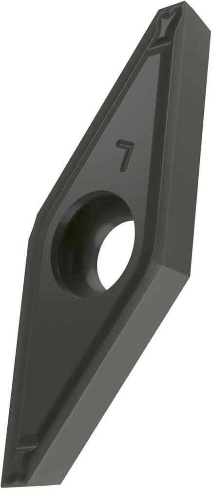 Spezialausführung positive Drehwendeschneidplatte · 35° Rhombisch mit 7° Freiwinkel · Innenkreisdurchmesser von 7.94mm · 3.18mm Dick · Radius · Indexgenauigkeit nach ISO-Toleranzklasse-G · Spanbrecher FF2 mit scharfer Schneidkante · im Substrat TT010 · unbeschichtet Cermet im ISO-Bereich P01 -P10 · zum schlichten bis medium bearbeiten von Stählen mit einem rechtsschneidendem Werkzeug