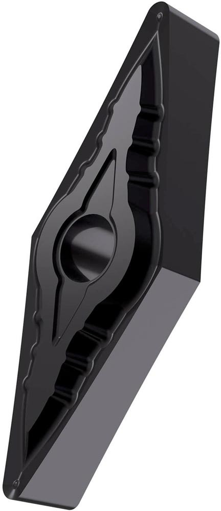 Doppelseitige negative Drehwendeschneidplatte · 35° Rhombisch mit Innenkreisdurchmesser von 9.525mm · 4.76mm Dick · 0.4mm Radius · Indexgenauigkeit nach ISO-Toleranzklasse-M · Spanbrecher SF mit verrundeter Schneidkante · im Substrat T6310 · PVD beschichtet WC-Co Feinstkornsubstrat in den ISO-Bereichen P01 -P15/M01 -M15/K05 -K20/S01 -S15 und H01 -H15 · zum schlichten bis medium bearbeiten von Stählen · nichtrostenden Stählen · Gusseisen · Superlegierungen und gehärtetem Material