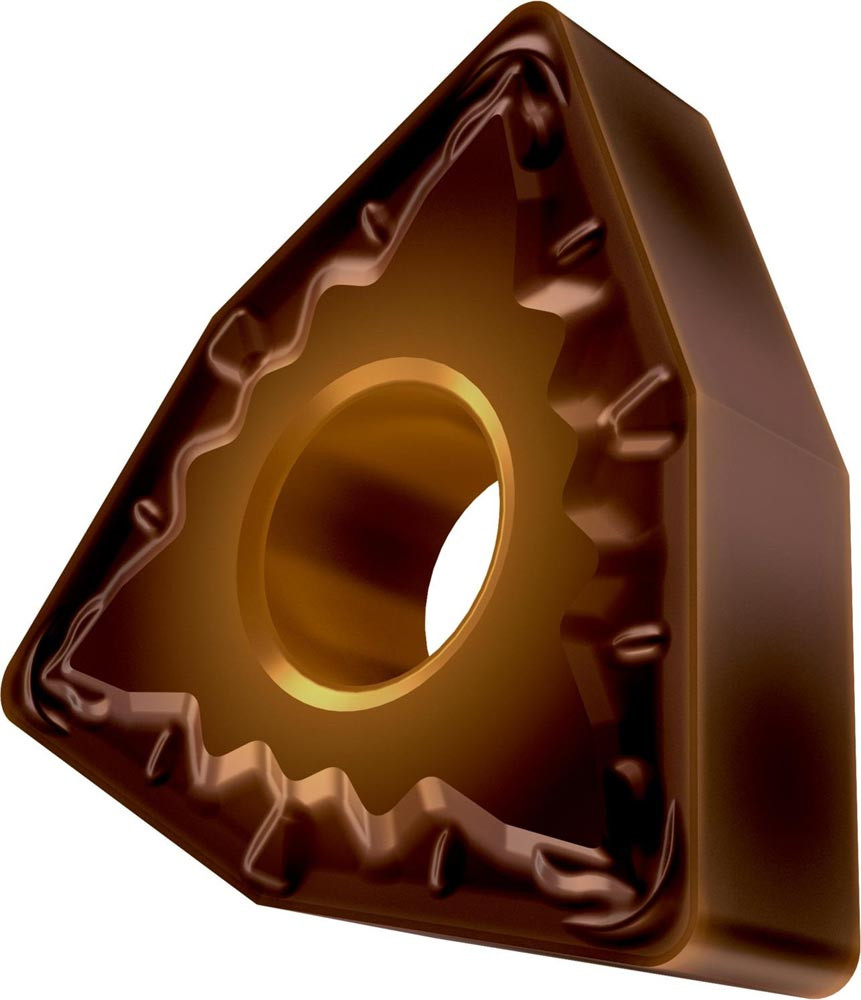 Doppelseitige negative Drehwendeschneidplatte · 80° Trigon mit Innenkreisdurchmesser von 12.7mm · 4.76mm Dick · 0.8mm Radius · Indexgenauigkeit nach ISO-Toleranzklasse-M · Spanbrecher FM mit verrundeter Schneidkante · im Substrat T8430 · PVD beschichtet WC-Co Feinkornsubstrat im ISO-Bereich P20 -P40 · zum schlichten bis medium bearbeiten von Stählen