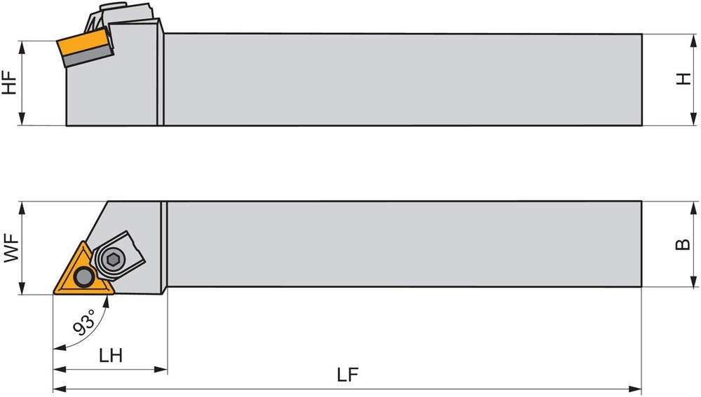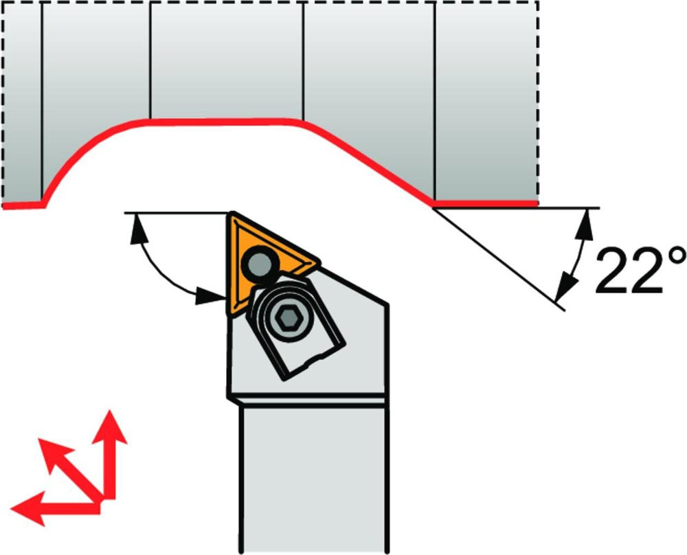 Dreh-Trägerwerkzeug multi lock zum spannen von Triangular negative Wendeschneidplatten mit einem Innenkreisdurchmesser von 9.525mm · 4.76mm Dick (ISO Bezeichnung TN.. 1604.. ) · linke Ausführung zum 93° Stirndrehen mit abgesetzem Schaft · 25mm Werkzeughöhe x 25mm Breite x 150mm Länge für entgraten · Kegeldrehen · Kopierdrehen in einer und mehreren Richtungen und Längsdrehen mit und ohne Schulter