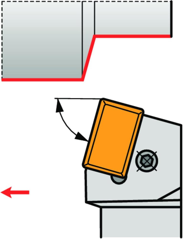 Dreh-Trägerwerkzeug mit Kniehebelklemmung zum spannen von Rechteckig negative Wendeschneidplatten mit einer Hauptschneidenlänge von 40mm (ISO Bezeichnung LNUX 40.... ) · rechte Ausführung zum 75° Stirndrehen mit Zylinderschaft · 60mm Werkzeughöhe x 60mm Breite x 400mm Länge für Kegeldrehen und Längsdrehen ohne Schulter