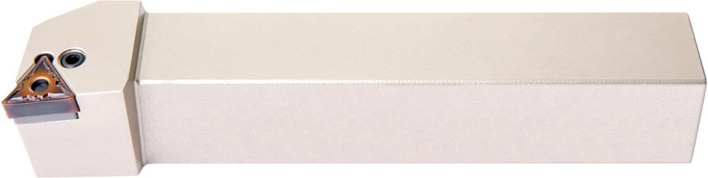 Dreh-Trägerwerkzeug mit Kniehebelklemmung zum spannen von Triangular negative Wendeschneidplatten mit einem Innenkreisdurchmesser von 12.7mm · 4.76mm Dick (ISO Bezeichnung TN.. 2204.. ) · rechte Ausführung zum 90° Stirndrehen mit abgesetzem Schaft · 25mm Werkzeughöhe x 25mm Breite x 150mm Länge für Kegeldrehen und Längsdrehen ohne Schulter