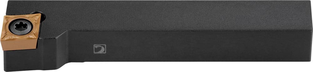 Dreh-Trägerwerkzeug mit Schraubklemmung zum spannen von 80° Rhombus positive Wendeschneidplatten mit einem Innenkreisdurchmesser von 12.7mm · 4.76mm Dick (ISO Bezeichnung CC.. 1204.. ) · rechte Ausführung zum 95° Stirn-und Längsdrehen mit abgesetzem Schaft · 20mm Werkzeughöhe x 20mm Breite x 125mm Länge für entgraten · Kegeldrehen · Stirndrehen mit und ohne Schulter und Längsdrehen mit und ohne Schulter