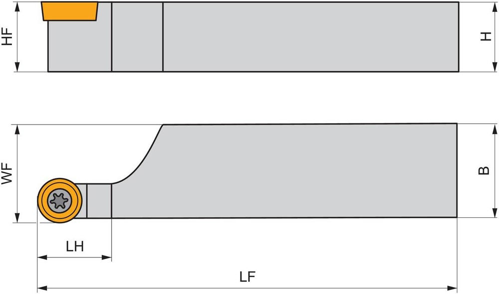 Dreh-Trägerwerkzeug mit Schraubklemmung zum spannen von Rund positive Wendeschneidplatten mit einem Durchmesser von 8mm · 3.18mm Dick (ISO Bezeichnung RC.. 0803MO ) · rechte Ausführung zum Stirn-and Längsdrehen mit Zylinderschaft · 25mm Werkzeughöhe x 25mm Breite x 150mm Länge für Kegeldrehen · Kopierdrehen in einer und mehreren Richtungen und Längsdrehen ohne Schulter