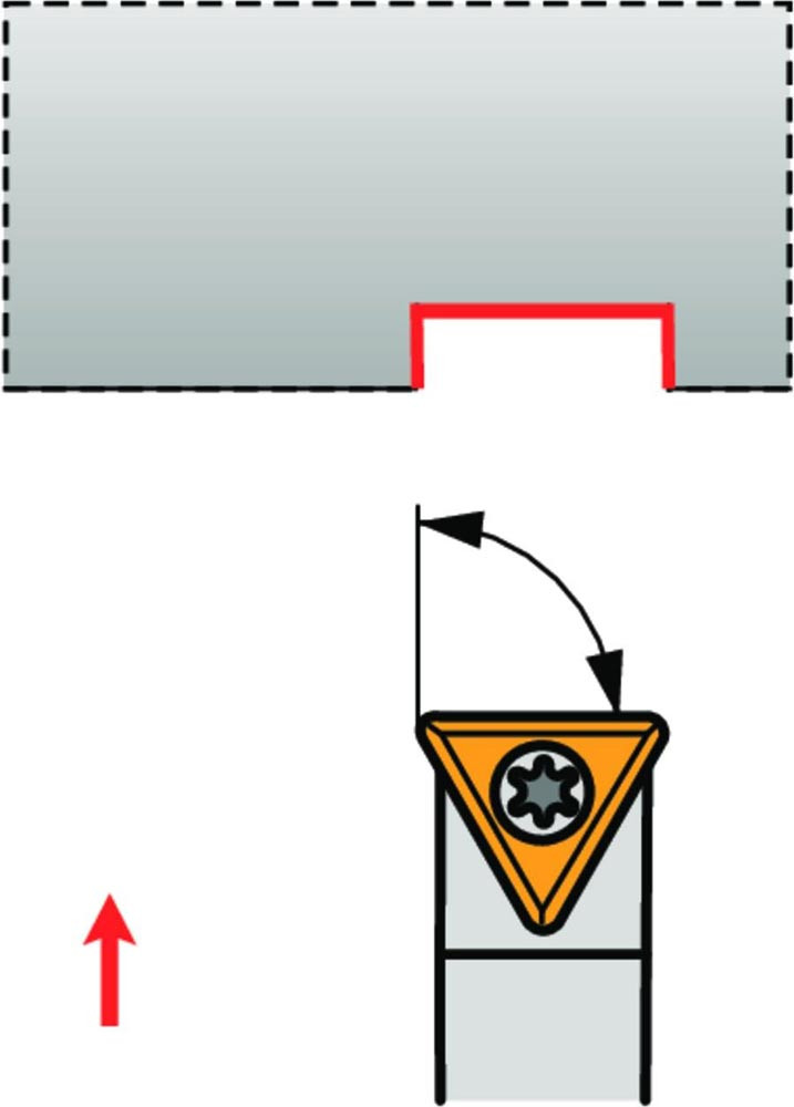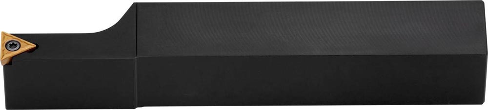 Dreh-Trägerwerkzeug mit Schraubklemmung zum spannen von Triangular positive Wendeschneidplatten mit einem Innenkreisdurchmesser von 6.35mm · 2.38mm Dick (ISO Bezeichnung TC.. 1102.. ) · rechte Ausführung zum 90° Längsdrehen mit abgesetzem Schaft · 20mm Werkzeughöhe x 20mm Breite x 125mm Länge für Stirndrehen mit und ohne Schulter