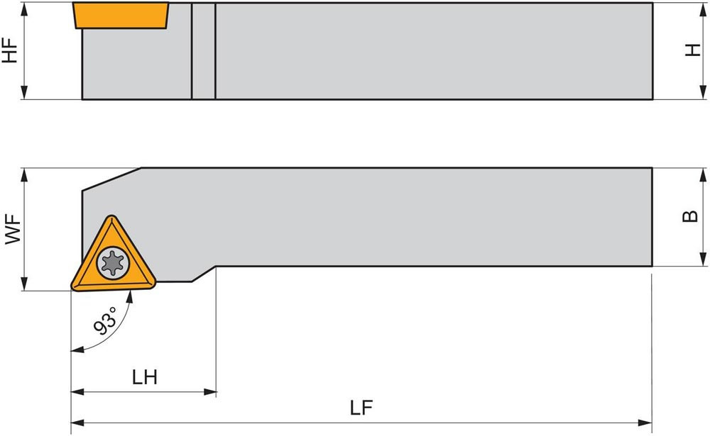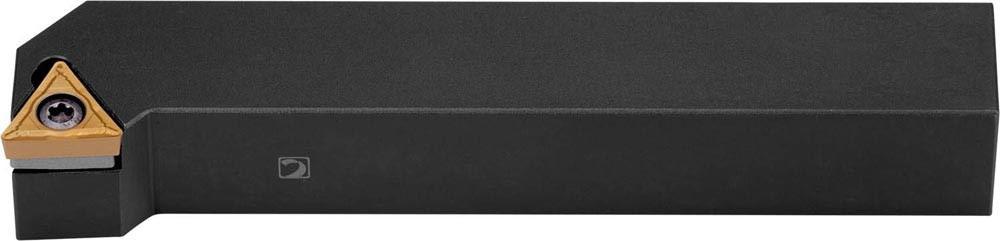 Dreh-Trägerwerkzeug mit Schraubklemmung zum spannen von Triangular positive Wendeschneidplatten mit einem Innenkreisdurchmesser von 6.35mm · 2.38mm Dick (ISO Bezeichnung TC.. 1102.. ) · rechte Ausführung zum 93° Stirndrehen mit abgesetzem Schaft · 16mm Werkzeughöhe x 16mm Breite x 100mm Länge für Kegeldrehen und Längsdrehen mit und ohne Schulter