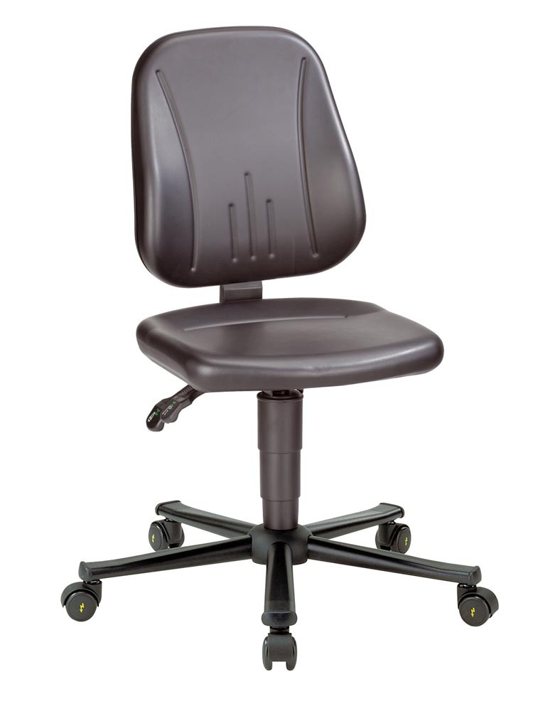 ESD Arbeitsstuhl, Kunstleder schwarz, Gasfeder-Sitzverstellung 440-620 mm, Lastabhängig gebremste Rollen E1989471