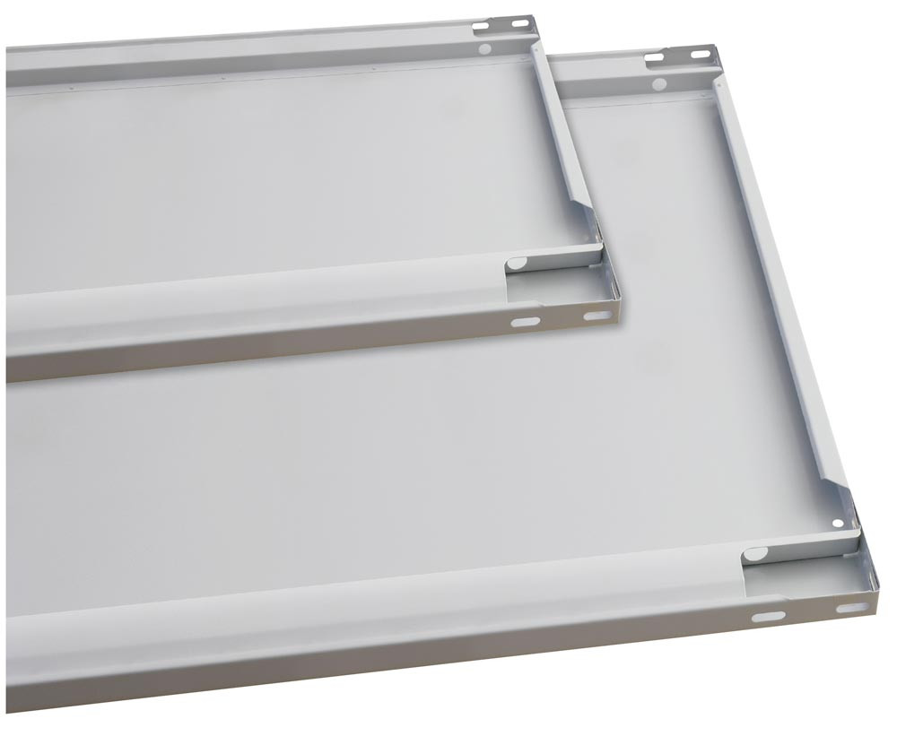 Fachboden mit Mittelanschlag, lackiert in RAL 7035 lichtgrau, BxT 1000x600 mm, Traglast 150 kg