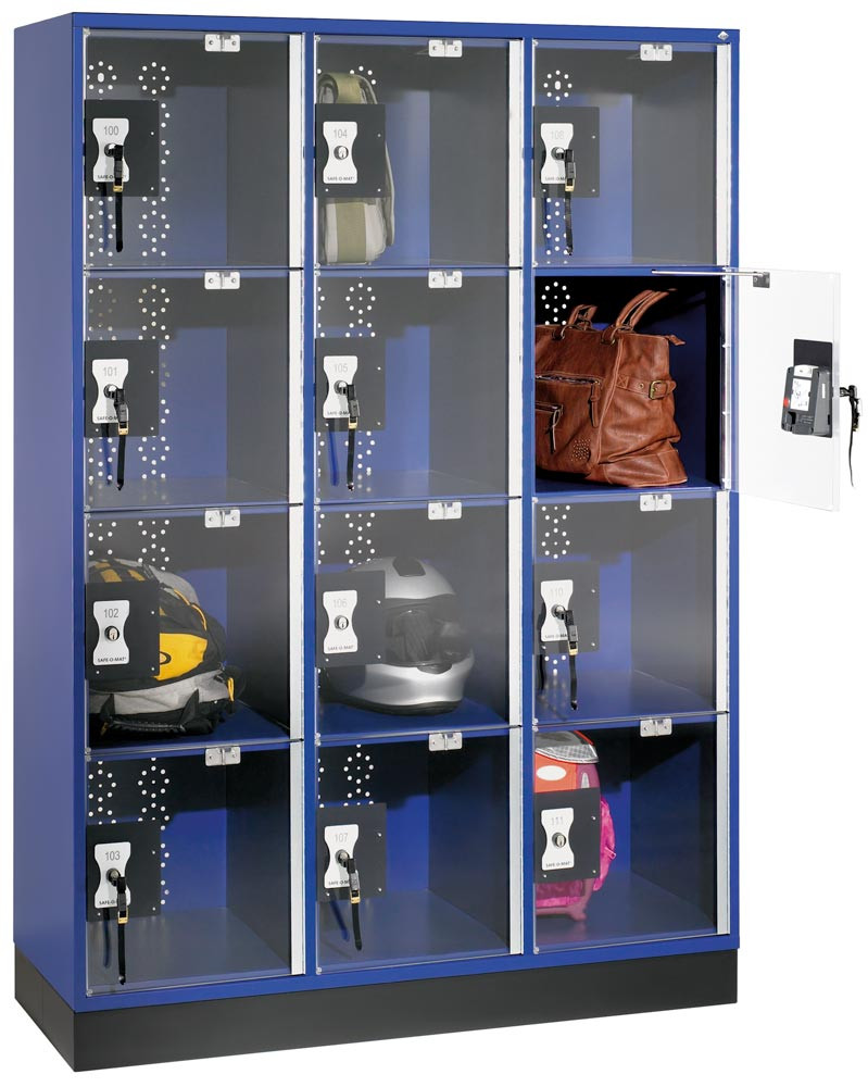 Fächerschrank mit Acrylglastüren, 3x4 Fächer 380 mm, BxTxH 1220x500x1750 mm, Schloss, RAL 5012