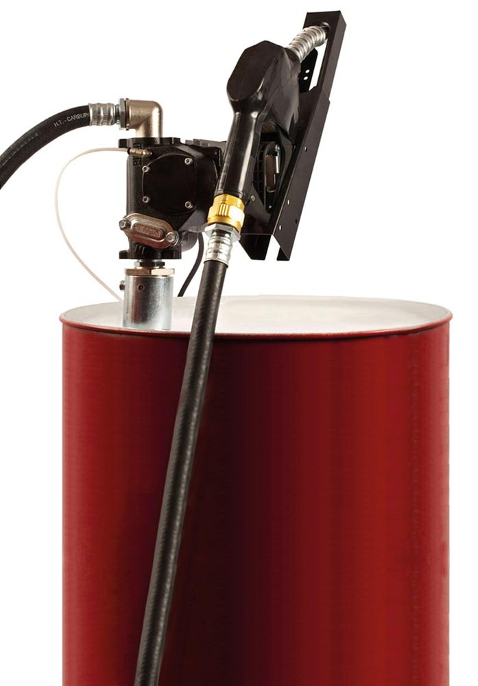 Fass- und Behälterpumpe, komplett mit 4 m Abgabe-+1,6 m Saugschl., Förderl. ca. 38 l/min, Förderh. 9 m, 12 Volt, mit Kunststoff-Zapfpistole E817392