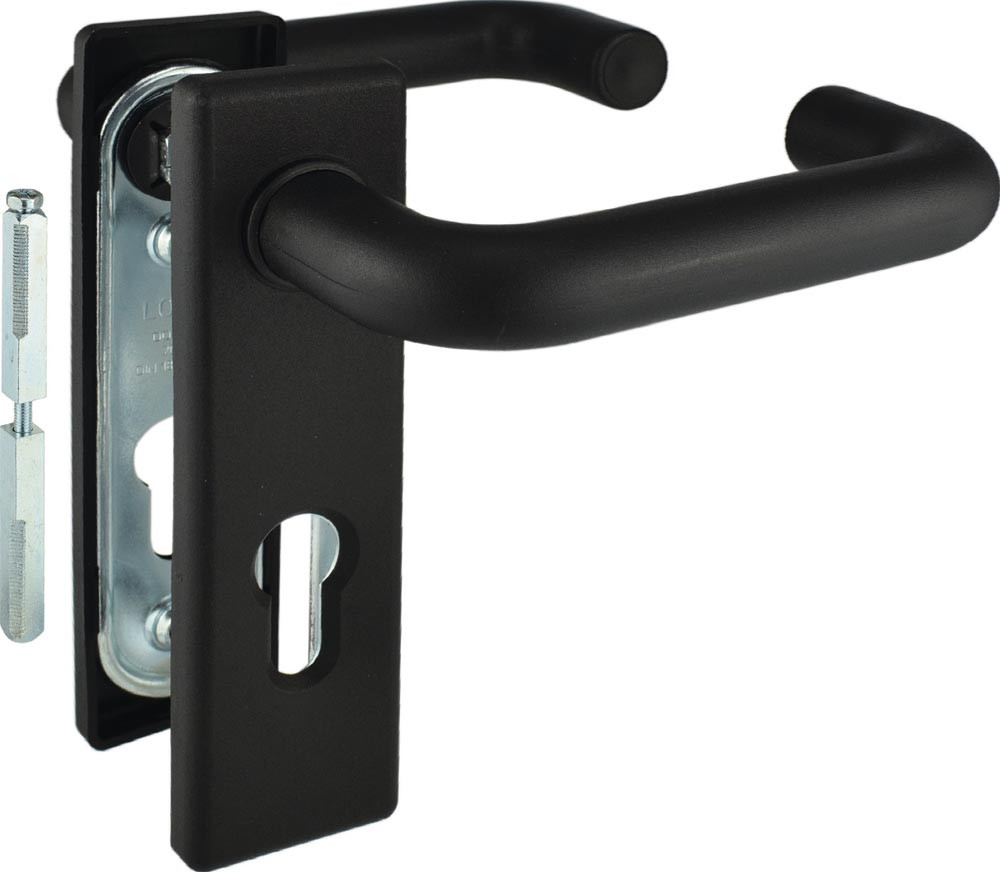 Feuerschutzgarnitur 81P Kunststoff sw K/D für Türstärke 40-66 mm PZ käntig DIN links / rechts E6428583