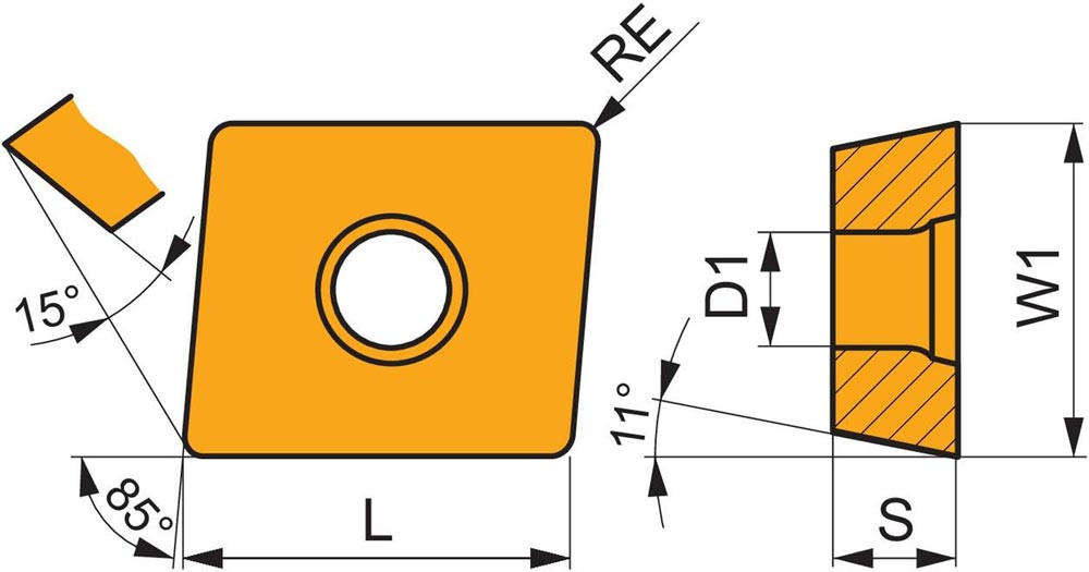 · Formcode Wendeschneidplatte: A - Parallelogramm 85° eingeschlossener Winkel
